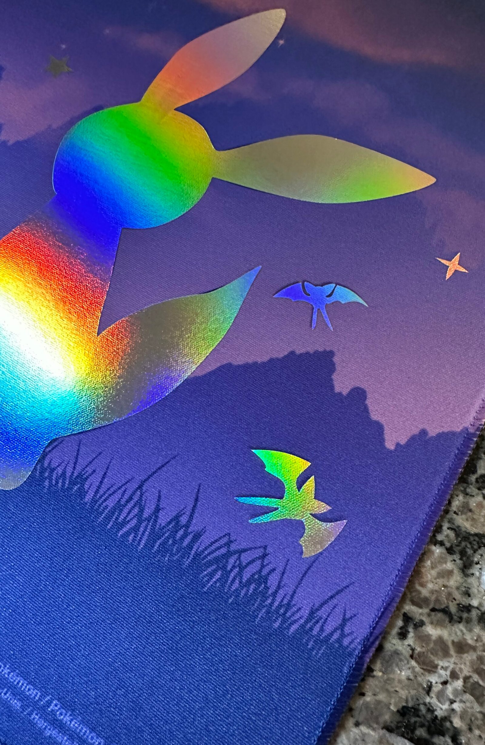 Official Pokemon Center mat altered by me with holographic foiling. Includes playmat tube.
