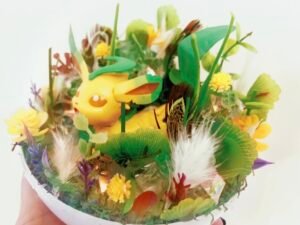each one i create is one of a kind and i pour lots of love into each one with amazing detail and attention to the little environment the pokémon lives in !
